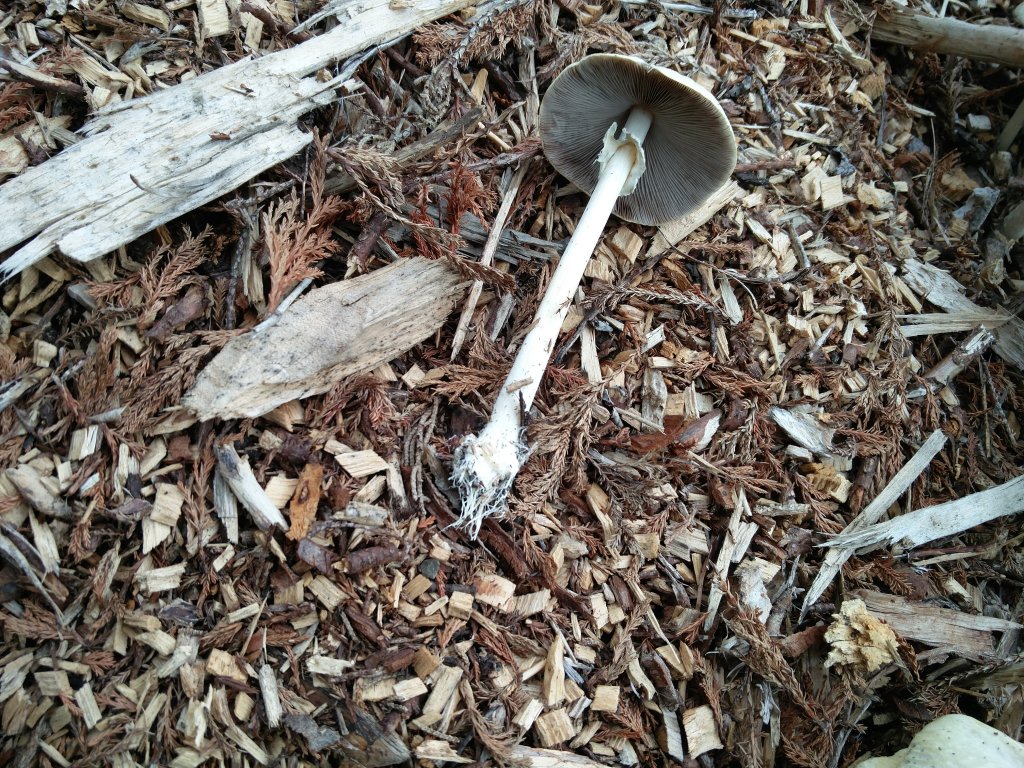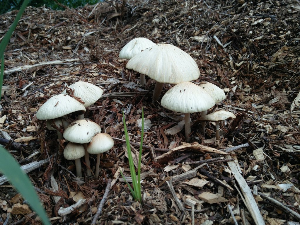 They were growing in many little clusters in the woodchip which was great as I could see more mature specimens alongside the ones in their prime. The more mature had discoloured browny caps that had flattened out from their more distinctive irregular conical shape.
