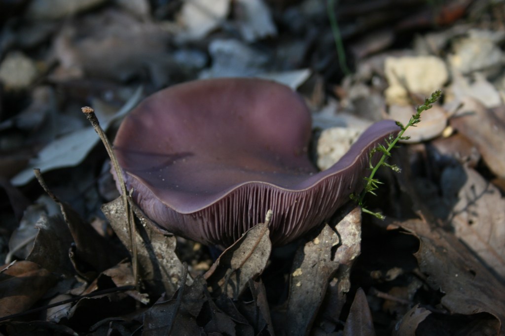 There were some immature pine trees surrounding the villa and amongst this and the prickly pears I spotted these delightful purple/blue fungi. Crowded gills and textured looking stipe, with no ring helped give them some distinct features for my quest for identification.