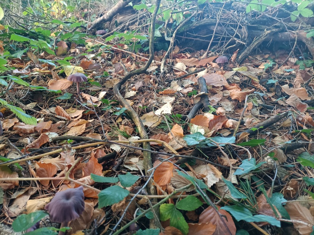 Laccaria amethystina, Amethyst Deceiver, is another of my favourites, on account of its distinct colour. They can camouflage amongst the autumnal leaves and other forest litter in dark woods, in their majestic plum tones, but even more so when older when they can be mistaken for their close relative – Laccaria laccata, The Deceiver, as they grow paler.